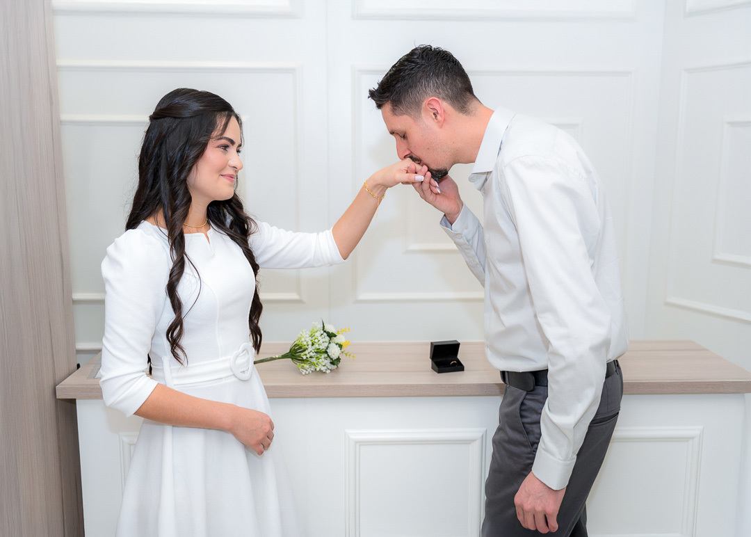 Juntos a oito anos eles sonhavam um casamento simples mas mostrando todo amor que têm! Aproveitamos até o espaço do cartório para fazer algumas fotos rápidas enquanto esperávamos o escrivão e depois foi um lindo piquenique ao pôr-do-Sol no Mirante mais lindo aqui da região, o Mirante da Volta do Dedo! Muita gratidão por confiarem em nós, da Foto Chapecó, para registrarmos todo esse carinho em fotos que fizeram um lindo álbum para o casal!